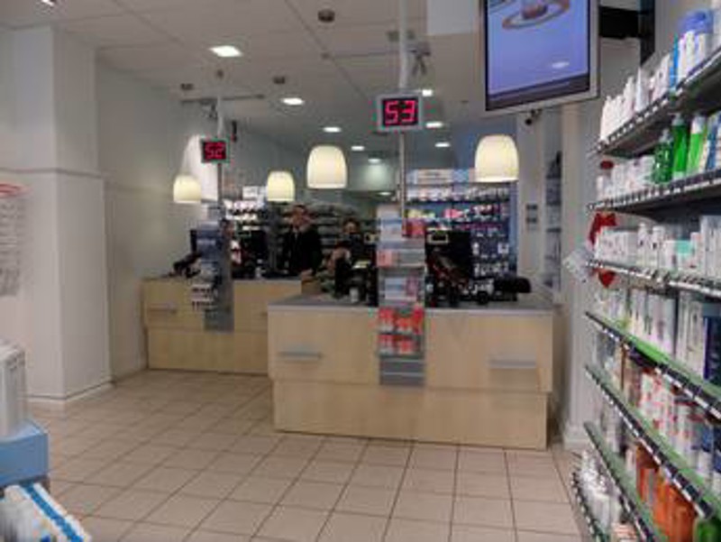 Sct.Knuds Apotek: Vores 4 kasser i skranken.